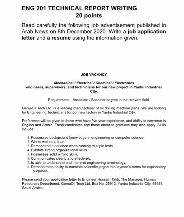 Solved Eng 201 Technical Report Writing 20 Points Read Chegg Com